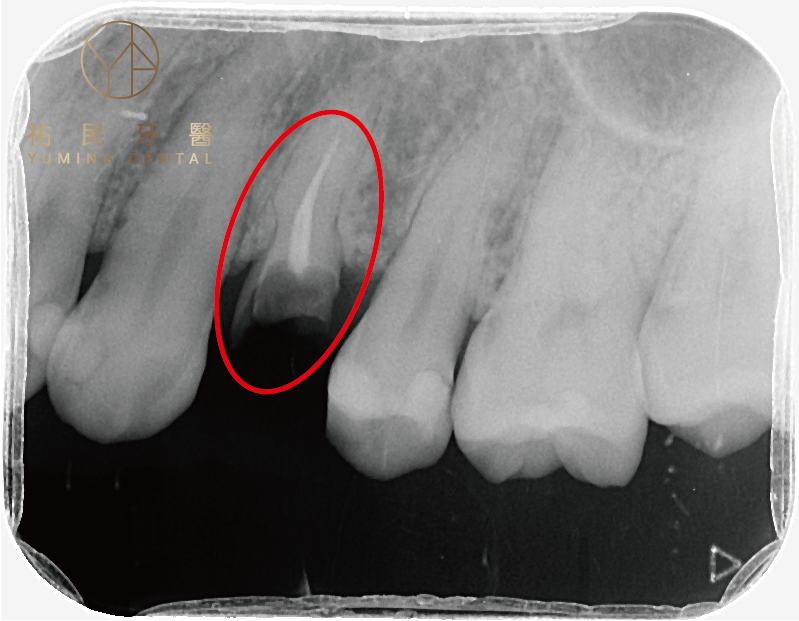 ▲從X光片可以看出只剩殘留的牙根,牙根會很容易引起感染,所以殘留的牙根必須拔掉,才不會造成牙周問題。